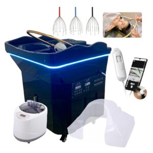 Japanese Head Spa Waterfall Equipment, Shampoo Bowl Waterfall Head Spa with 60 L Water Storage Tank, Portable Water Circulation Head Spas Sink with Fumigation