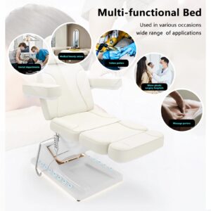Esthetician Bed Electric Massage Table, Adjustable Facial Massage Tattoo Chair for Client, 3 Motor Customized Angle Spa Beds for Lash Tattoo Treatment Pedicure Barber Chair (White)